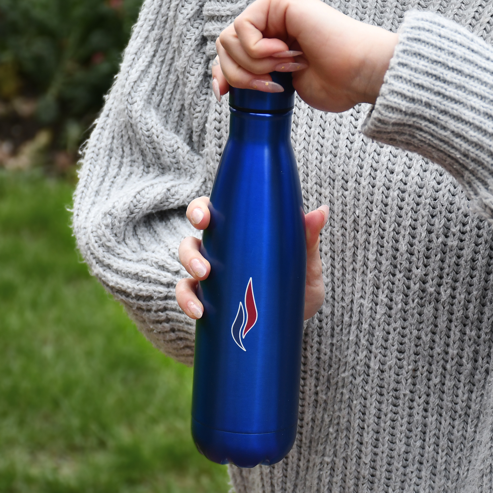 Pratique, élégante et résistante, cette gourde isotherme bleue est idéale pour accompagner votre quotidien comme vos activités sportives. Son design épuré est sublimé par le logo flamme est un symbole d’engagement.