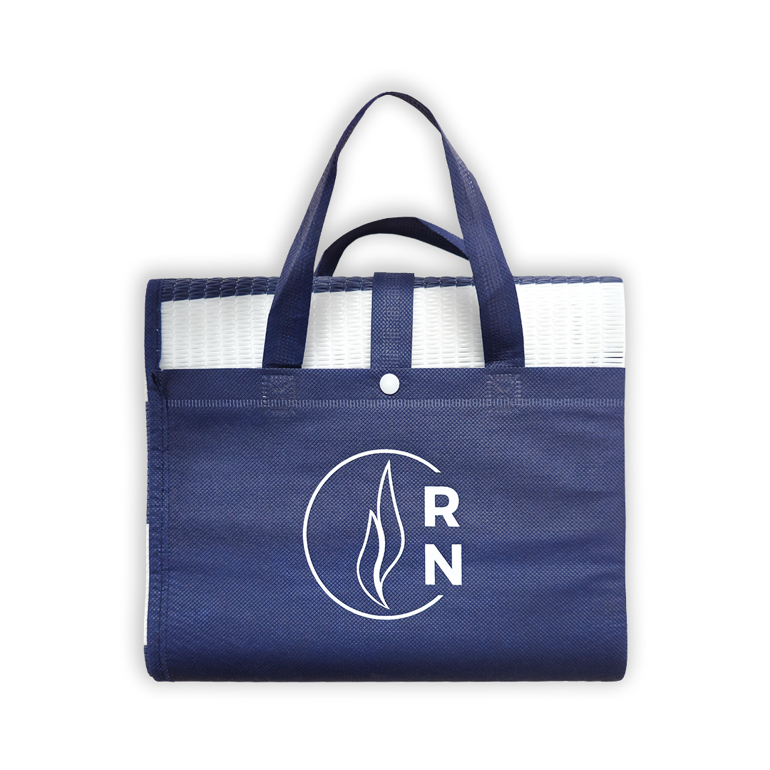 Un sac qui se transforme en tapis de plage une fois déplié.